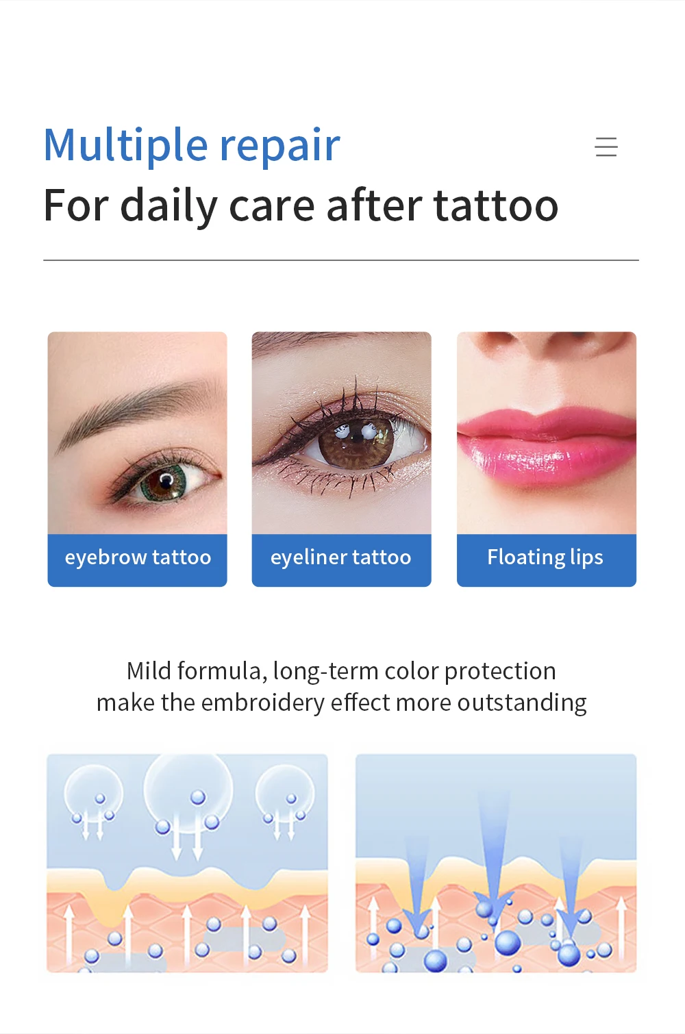 - Após a tatuagem, reparo rápido, desperte a nova vitalidade da pele.