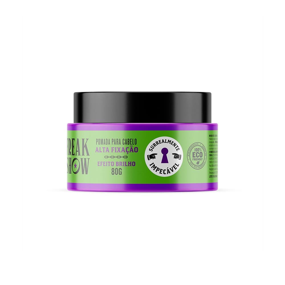Pomada Water Soluble Freak Show proporciona fixação firme e acabamento com alto brilho. Possui efeito de longa duração que preserva a modelagem dos fios e ainda permite que você reestilize o penteado ao longo do dia sem perder o brilho.